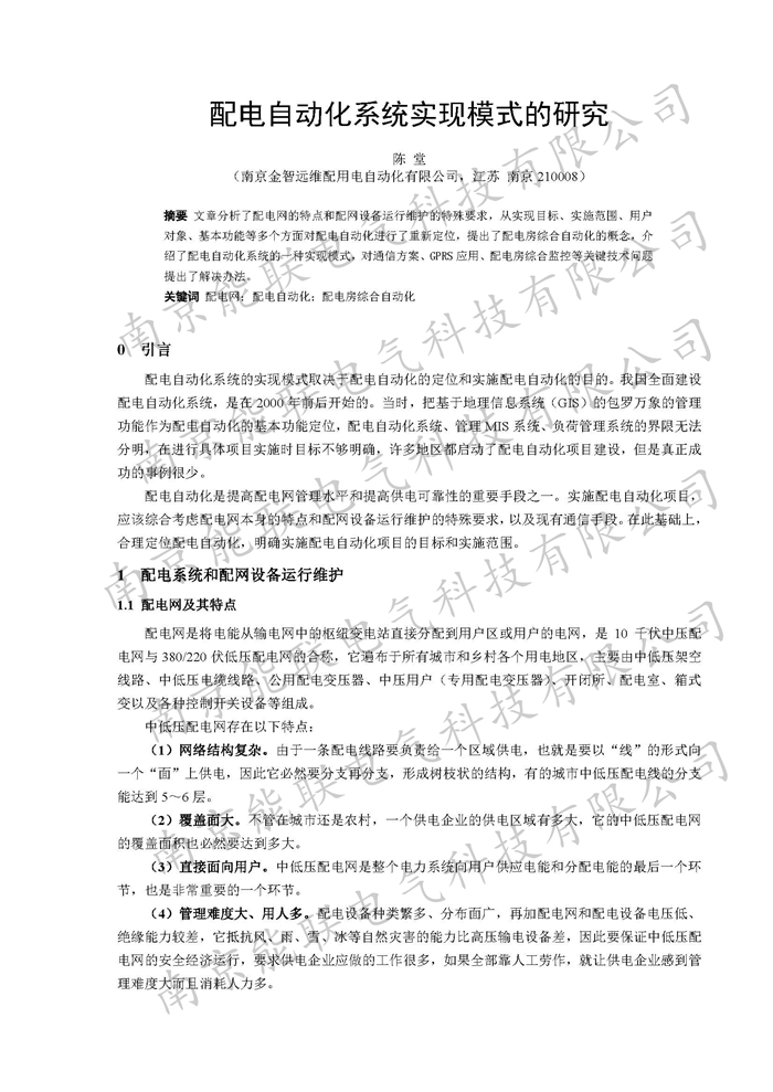 配電自動化系統(tǒng)實現(xiàn)模式的研究